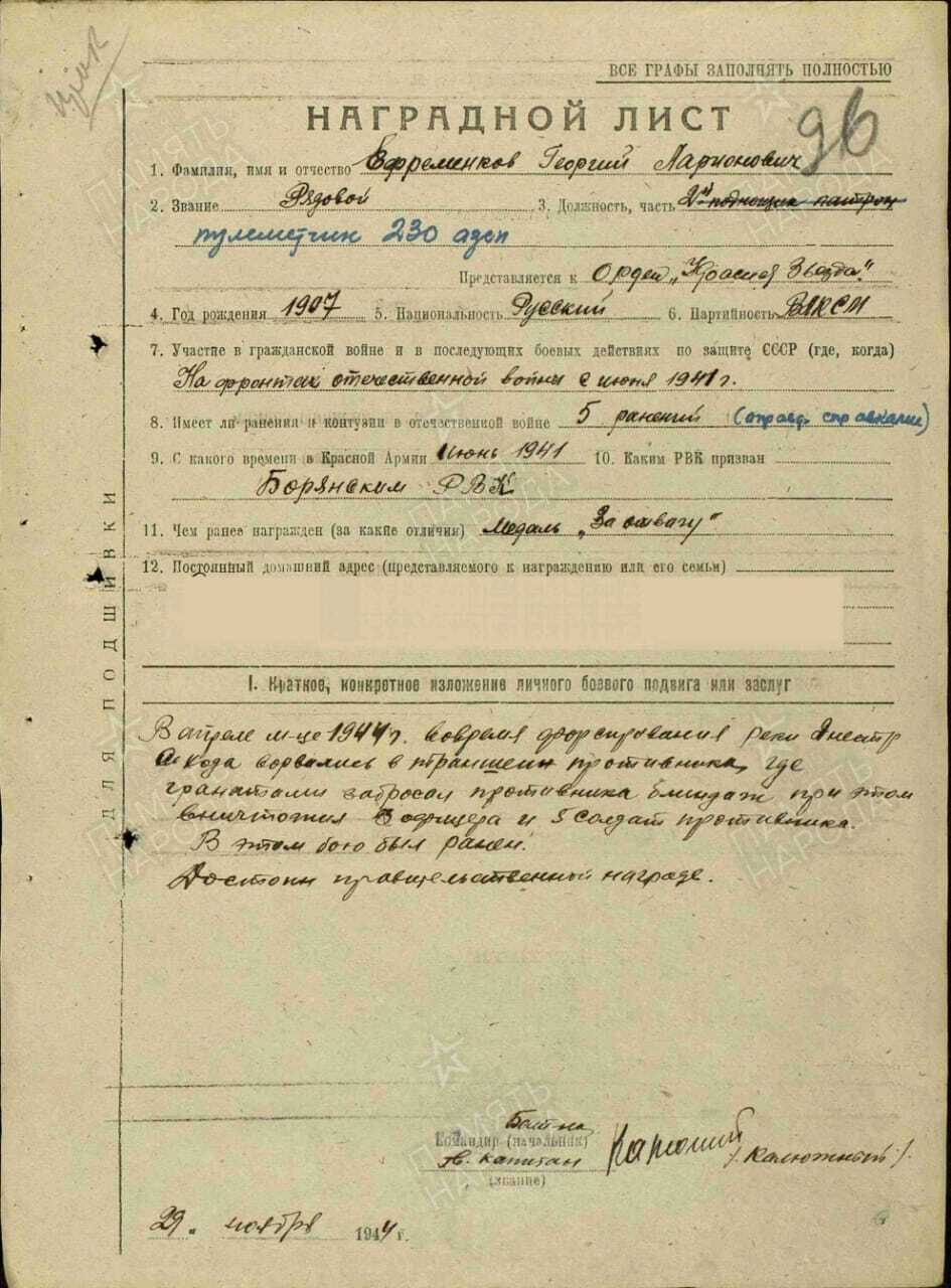 Служил в Воинской части ОЗО 63 53 А 63-м отдельном заградительном отряде 230-го армейского запасного стрелкового полка.