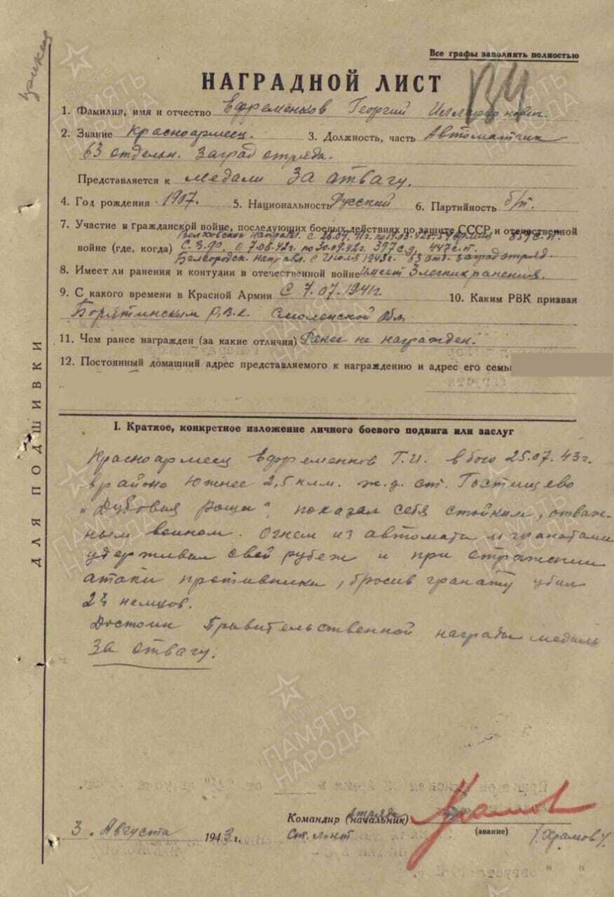 Воинское звание: красноармеец.