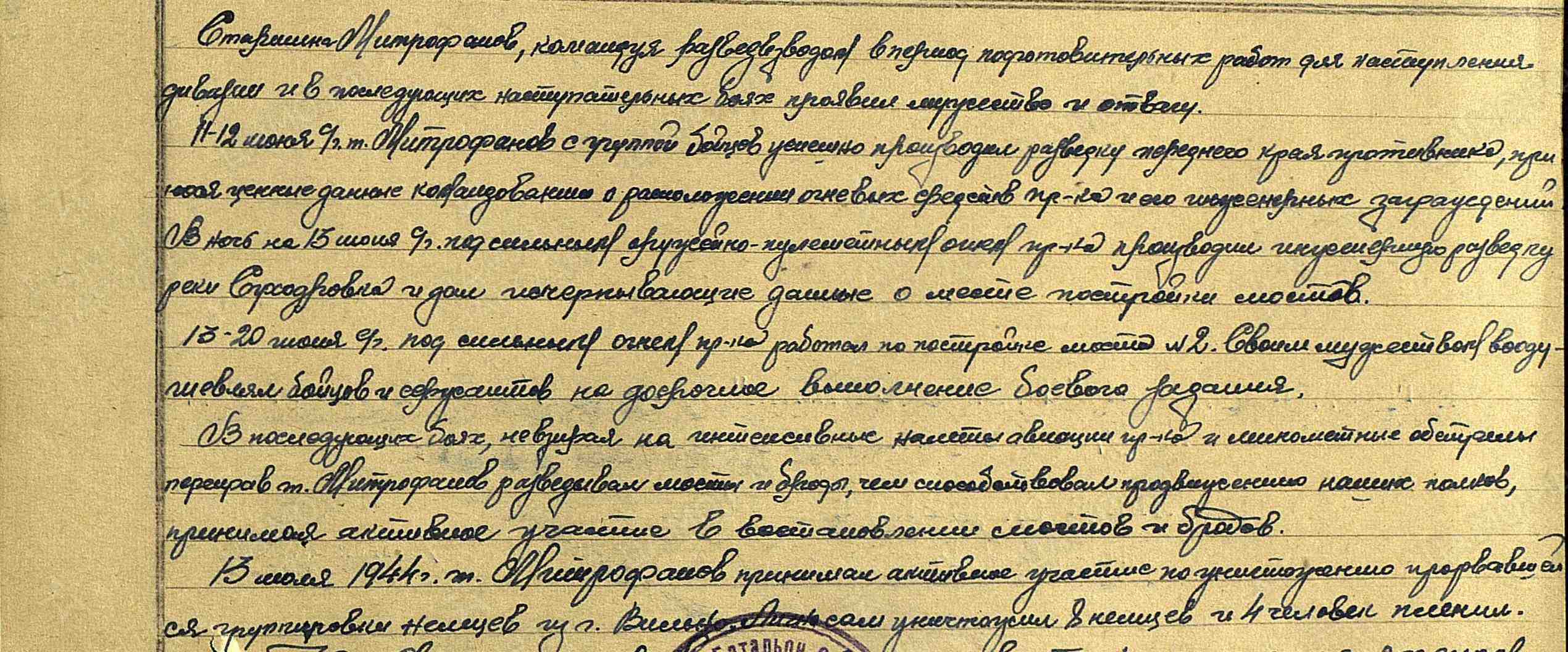 Я хочу рассказать о защитнике Родины, участнике Великой Отечественной войны — о моем дедушке Дмитрии Тимофеевиче Митрофанове. Он прошел весь путь войны с июня 1941 года по лето 1945 г.
